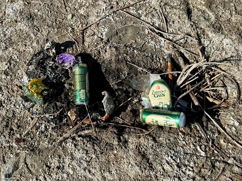 Пластик, банки, бутылки, остатки сетей и мусора — все это стелется вдоль берега.