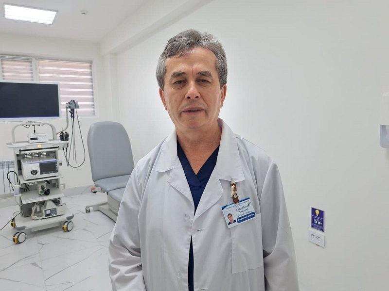 «Такое экспертное эндоскопическое оборудование очень важно для дальнейшего развития. И как раз вовремя спонсоры помогли нам его приобрести и дооснастить кабинет бронхоскопии в нашем онкоцентре. Теперь мы можем не только диагностировать заболевания, но и обеспечивать выздоровление больным с предопухолевыми заболеваниями и проводить малоинвазивные операции на ранних стадиях. На данный момент мы проводим бронхоскопию в день 4 или 5 пациентам», — рассказал заведующий эндоскопического отделения онкологического центра г.Шымкента Бердияр Кадирбеков.